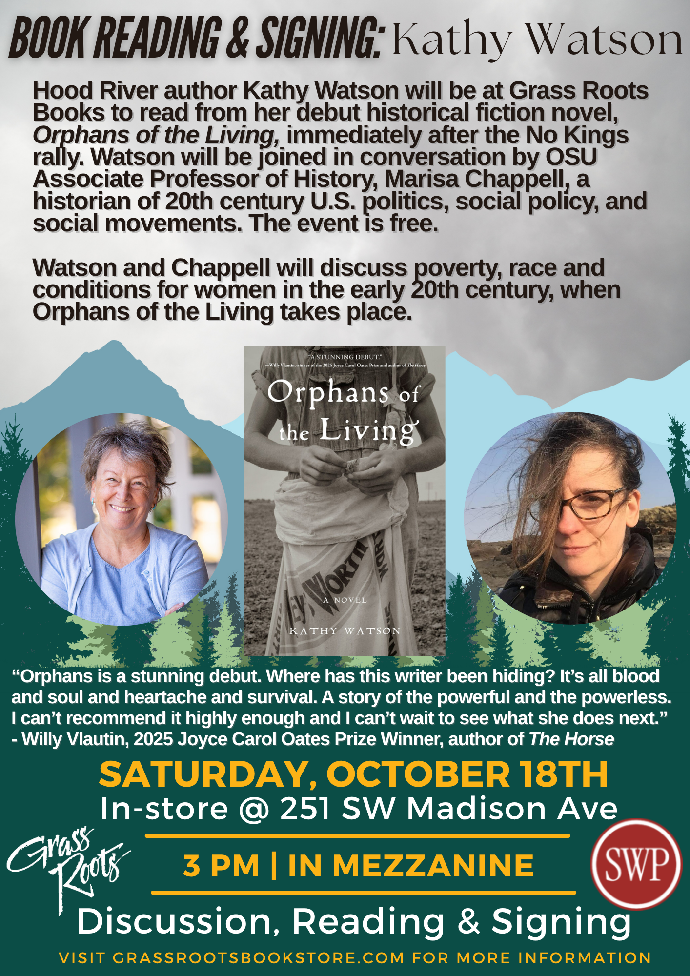 Saturday, October 18, 3 p.m. at Grass Roots Books in Corvallis, in conversation with OSU history profession Marisa Chappell. Here’s a nice poster from Grass Roots!